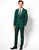 Two Button Notch Lapel One Chest Pocket Flap Front Pockets Front Ticket Pocket Cuff Link Slim Fit Color : Emerald Green