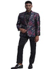 One Button Closure Single Breasted Shawl Lapel Two Besom Pockets One Chest Pocket Floral Pattern Color: Black