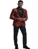 One Button Closure Single Breasted Shawl Lapel Two Besom Pockets One Chest Pocket Floral Pattern Color: Red
