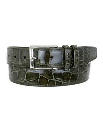 Full Grain Leather Backing Silver Semi Gloss Buckle Handmade Material: Genuine Alligator Color: Olive