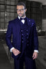 Two Button Peak Lapel One Chest Pocket Two Flap Front Pockets Full Cut / Wide Leg Double Breasted Slanted Vest Color: Royal Blue SKU#JA54969