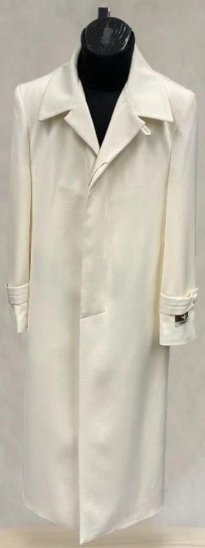 Plush Blend Full Length 53" 4 Button Jacket Single Breasted Fly Front Collar Welt Pockets All Weather Microfiber Dry Clean Only Color: Off White
