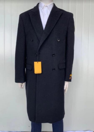 Mens Full Length And Cashmere Overcoat - Winter Topcoats - Black Coat 3 Button Single Breasted Notch Lapel Mens Full Length Color: Black