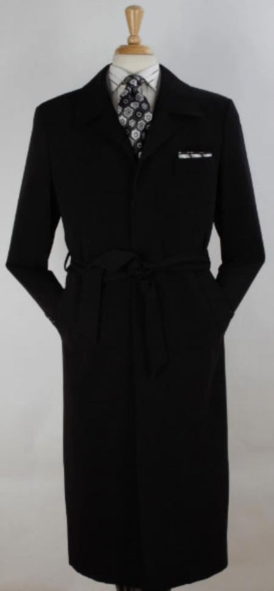 Mens Full Length And Cashmere Overcoat - Winter Topcoats - Black Coat 2 Button Closure Single Breasted Shawl Lapel Mens Full Length Color: Black