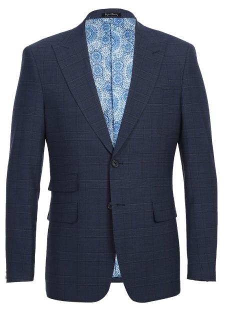 View full detailsJacket 2 Button Front Closure Notch Lapel Single Breasted Side Vents Pants Flat Front Pants Available color: Navy SKU#J53880