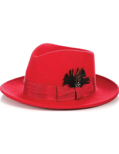 New Men's Fedora Trilby Mobster Hat Red Mobster Hat Color: Red SKU#JA56124