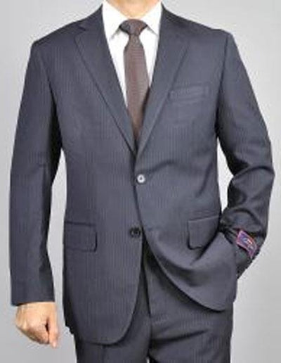 Giorgio Fiorelli Suit Two Buttons Notch Lapel Besom Chest Pocket Front Flap Pockets Stripe Pattern Classic Fit Double Vent Flat Front Pants Materia...
