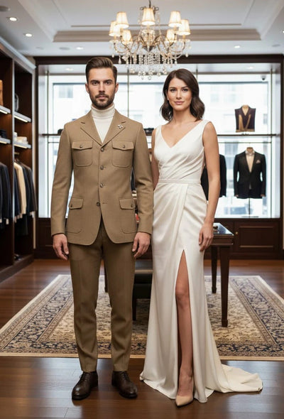Elevate your formal wardrobe with the Men’s Giovanni Testi Beige 2-Piece Suit, designed for the modern man who values style and sophistication. Thi...