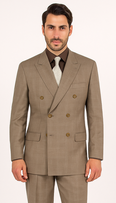 View full detailsThe Men’s Classic Wool-Feel Double-Breasted Glen Plaid Suit in Tan is a masterpiece of timeless style and modern craftsmanship. Inspired by heritag...