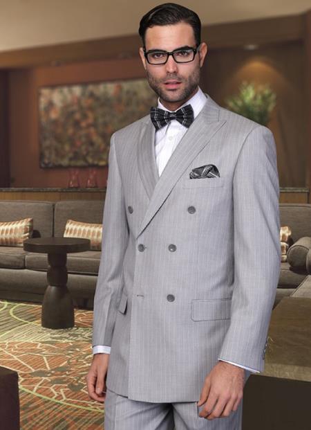 View full detailsOne Buttons Single Breasted Peak Lapel Pinstrip Pattern One Chest Pocket Two Flap Front Pockets Color: Gray SKU#JA2002