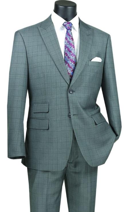 Vinci Men's 2 Piece Slim Fit Suit - Accented Windowpane Slim Fit Length 2 Button Jacket Single Breasted Peak Lapel Besom Pocket Flap Pockets Side ...