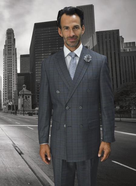 View full details6 Button Peak Lapel Double Breasted Windowpane Pattern Besom Chest Pocket Two Flap Front Pocket Color: Gray