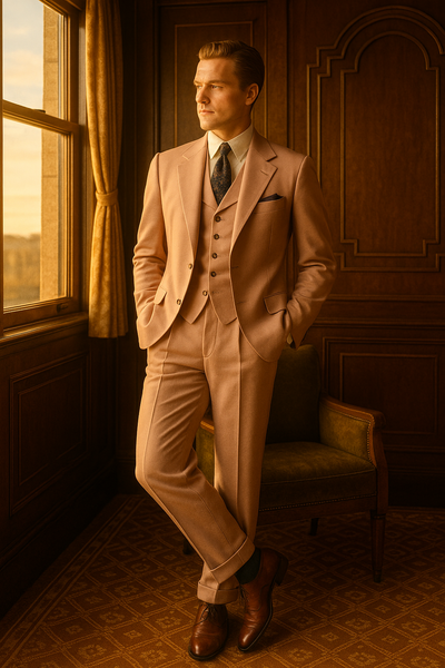Product Description: Turn back time in timeless style with our Men's Great Gatsby Pink Three-Piece Suit, a vintage-inspired masterpiece that blends...