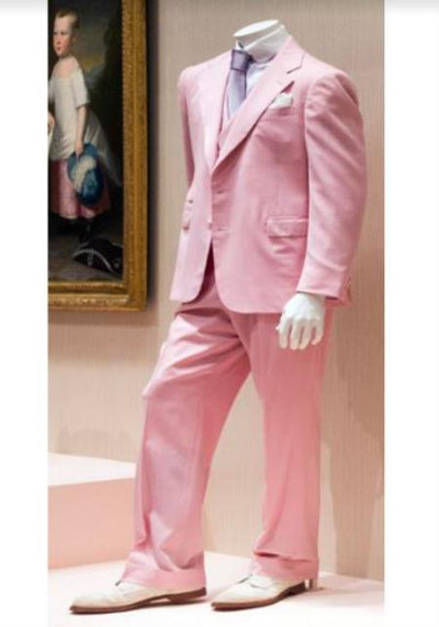 2 Button Peak Lapel Single Breasted Ticket Pocket Two Flat Front Pants One Chest Pocket Color: Pink SKU#JA55067
