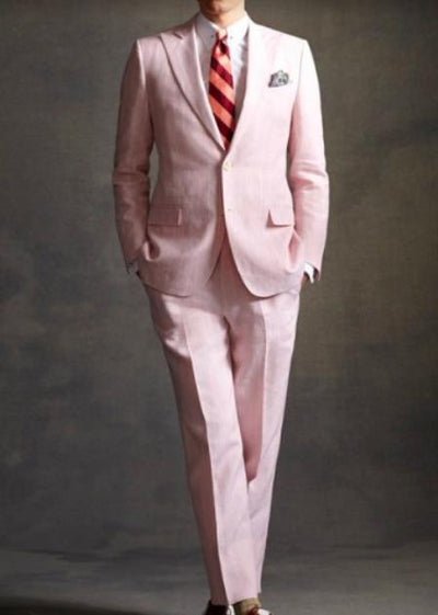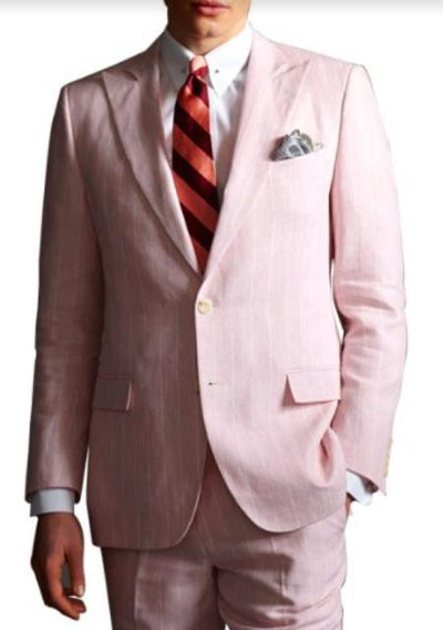 2 Button Peak Lapel Single Breasted Two Flat Front Pants One Chest Pocket Color: Pink SKU#JA55068