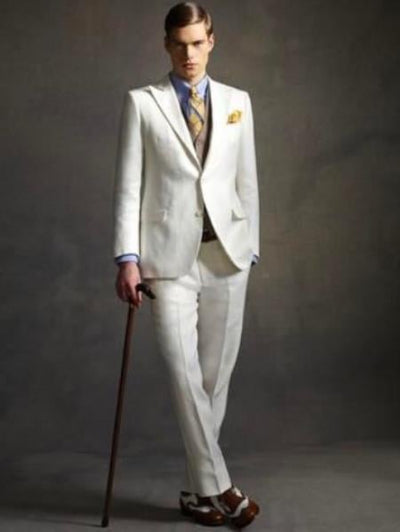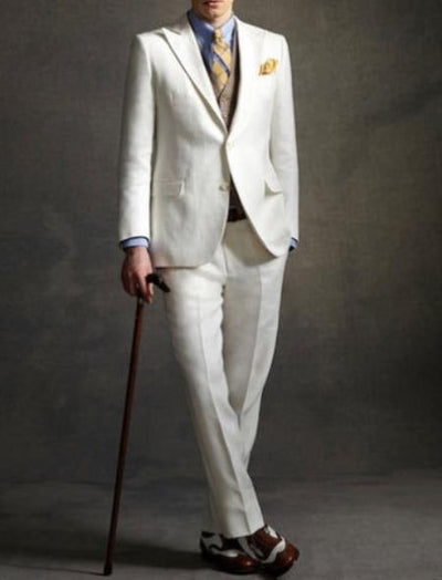 2 Button Single Breasted Peak Lapel One Chest Pocket Two Flap Front Pockets Color: Ivory