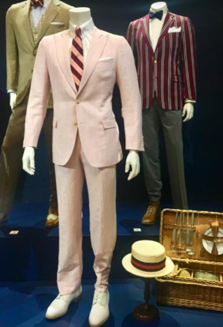 2 Button Peak Lapel Single Breasted Ticket Pocket Two Flat Front Pants One Chest Pocket Color: Pink SKU#JA55067