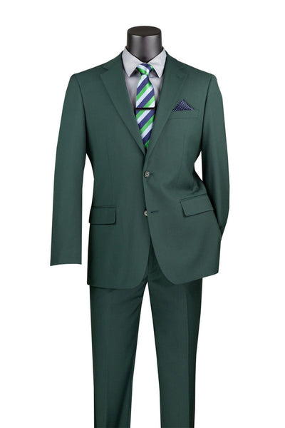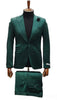 2 Button Shawl Lapel Single Breasted Solid Pattern Side Vents Flat Front Pants One Chest Pocket Two Flap Front Pockets Color: Hunter Green SKU#JA56...