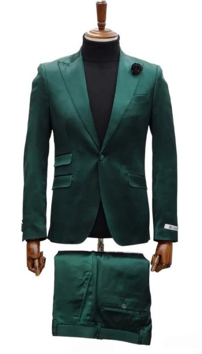 One Button Peak Label Single Breasted Slim Fit One Chest Packet Two Flap Front Packet Color: Dark Green
