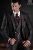 3 Piece Slim Fit Suit Peak Lapel Contrast Taping Color: Charcoal Grey,Gray SKU#SM153