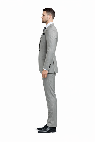 View full detailsStep into timeless elegance with this menโs 3-piece light grey pinstripe suit, tailored for a sophisticated and modern look. Made from premium-qual...