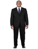 Single Breasted Two Button Peak Lapel VEST: V- Neck, Lining Back PANTS: Single Pleat, Half Lined, Expandable Waist Color: Black SKU#JA4293