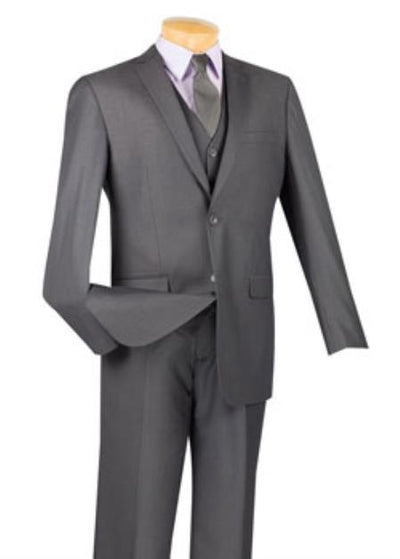 2 Button Closure Slim Fit Welt Chest Pocket Flap Front Pockets Slim Notched Lapel Double Vent Color: Grey SKU#SM1298