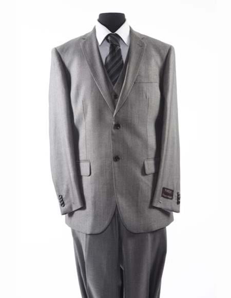 3 Piece Slim Fit Suit Peak Lapel Contrast Taping Center Vented Color: Silver Grey,Gray SKU#SM138