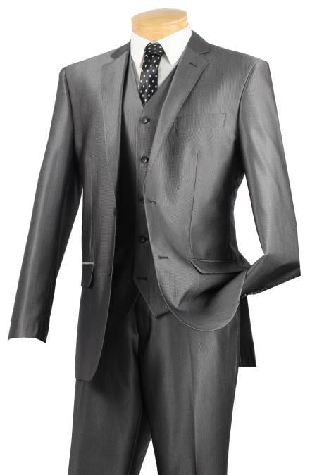 2 Button Suit Peak Lapel Center Vent Slim Fit Color: Charcoal Silver,Gray SKU#SM141