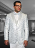 2 Button Notch Lapel Single Breasted Paisley Pattern Matching Bowtie One Chest Pocket Two Flap Front Pocket Color: White