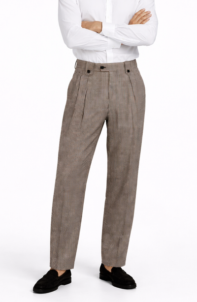 View full detailsThe Alberto Nardoni houndstooth wool vested suit is the epitome of classic tailoring, combining heritage pattern with modern elegance. Crafted from...