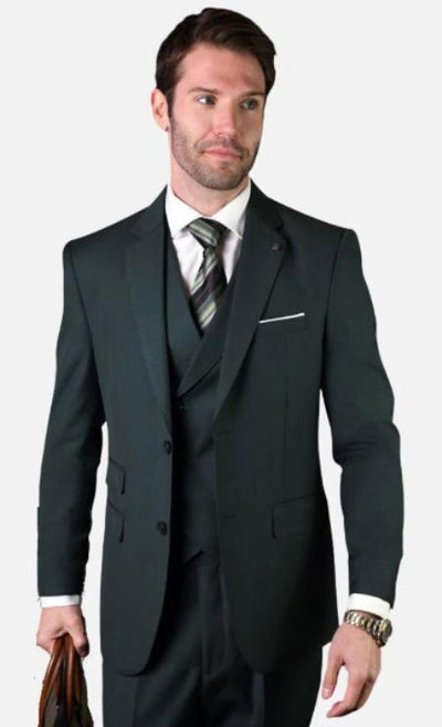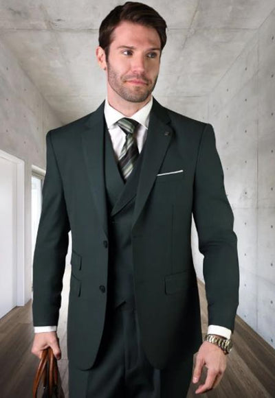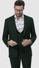 Two Button Single Breasted Notch Lapel One Chest Pocket Side Vents Matching Double Breasted Vest with Lapel Pleated Pants Color: Hunter Green SKU#J...