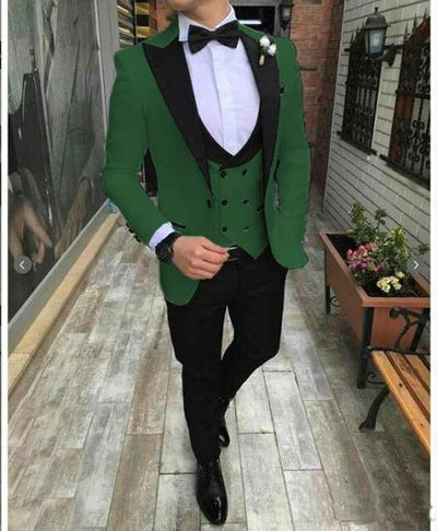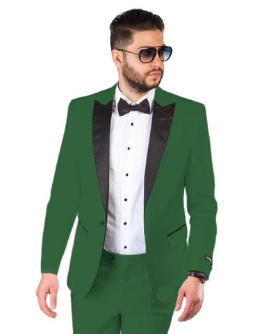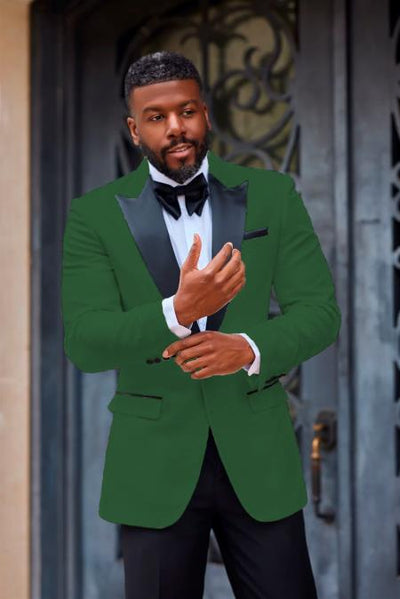 Make a refined and stylish impression with this Men’s Green Tuxedo Suit, designed with a modern slim-fit silhouette and elegant black satin shawl l...