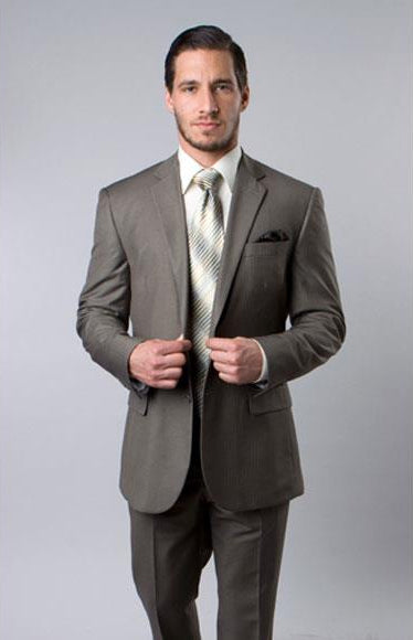 The Designer Affordable Inexpensive Men’s Plaid Pattern Classic Suit with Flat Front Pant in Dark Taupe is a refined choice for men who want to com...