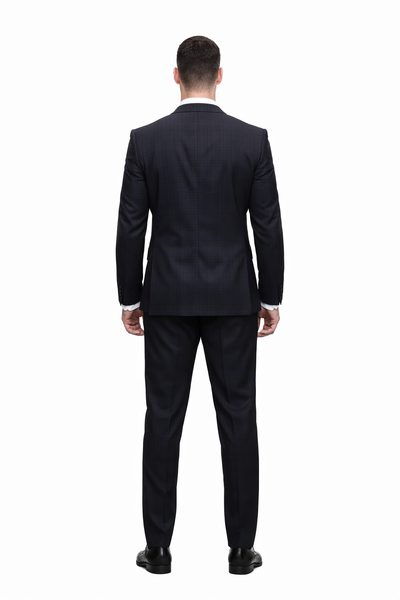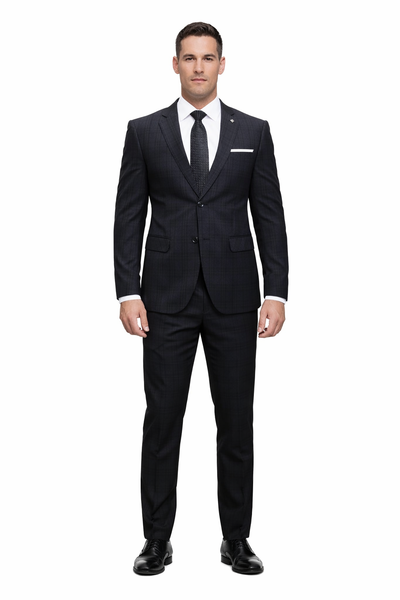 Men's Designer Two Button Wool Suit in Navy Blue Plaid This Affordable Designer Italian Super 200's Wool Suit Comes in a Modern Fit Design, with F...