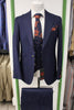 Two Button Single Breasted Notch Lapel One Chest Pocket Side Vents Matching Double Breasted Vest with Lapel Pleated Pants Color: Sapphire