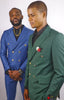 6 Button Double Breasted Peak Lapel Ticket Pocket One Chest Pocket Two Flap Front Pocket Color: Blue, Green SKU#JA54121