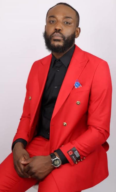 6 Button Double Breasted Peak Lapel Ticket Pocket One Chest Pocket Two Flap Front Pocket Color: Red SKU#JA54119