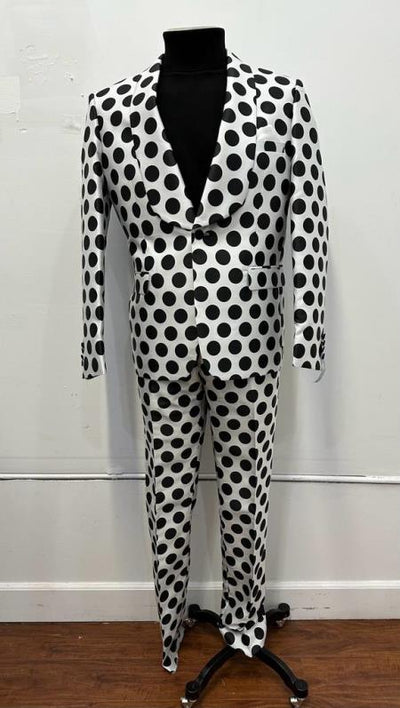 1 Button Shawl Lapel Single Breasted Pot Pattern One Chest Pocket Two Flap Front Pocket Color: White ~ Black