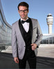 1 Button Shawl Lapel Single Breasted Flat Front Pants Matching Bow-Tie One Chest Pocket Two Besom Pocket Color: Grey