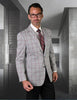 2 Button Notch Lapel Single Breasted Windowpane Pattern Modern Fit Flat Front Pants Besom Chest Pocket Two Flap Front Pocket Color: Grey