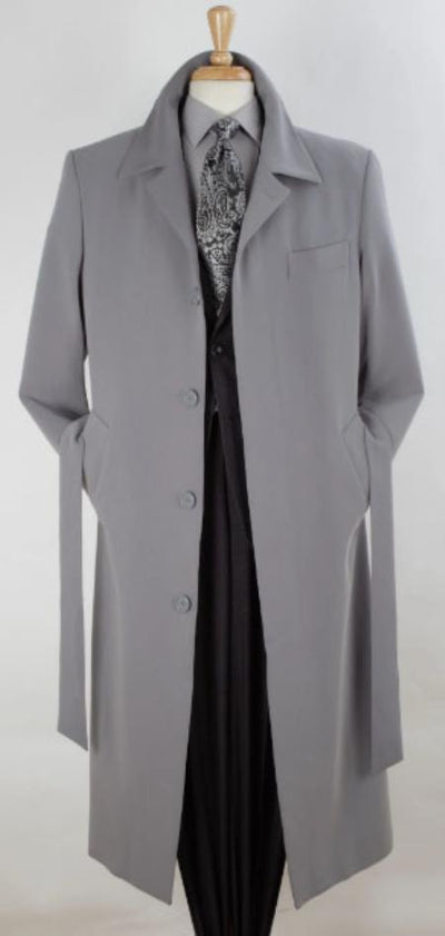 Single Breasted Hidden Buttons Belt Closure Notch Lapel Banded Wrists All Weather Microfiber/Polyester Blend Full Length Coat Color: Grey