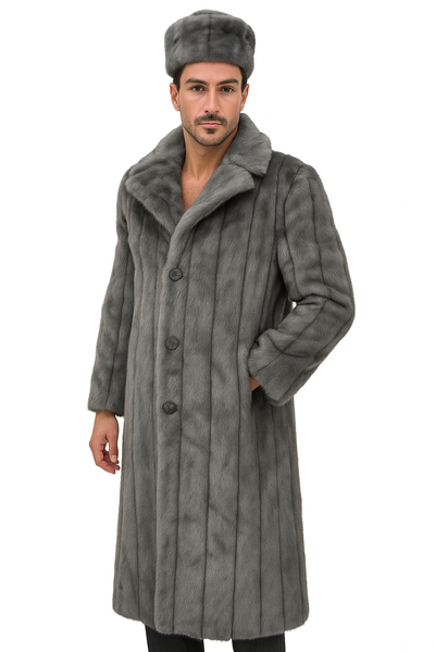 3 Button Full Length 48†Long Notch Lapel Removable Fur Collar Color : Grey SKU#MO761