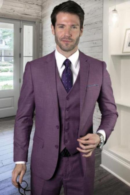 2-Piece Set: Includes Jacket & Pants Color: Purple Thread Count / Feel: Super 150's Pattern: Textured Jacket Lapels: Notch Front Buttons: 1 Jac...