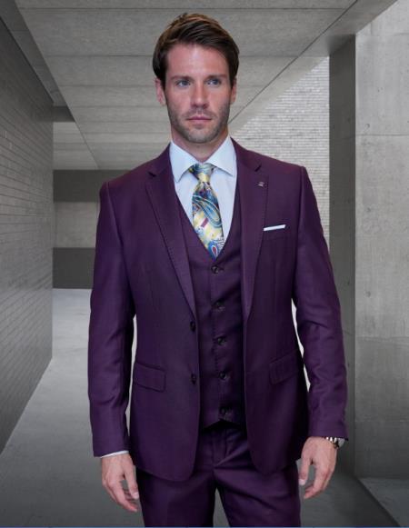 View full detailsTwo Button Peak Lapel Flap Front Pockets One Chest Pocket Color : Eggplant SKU#VT290