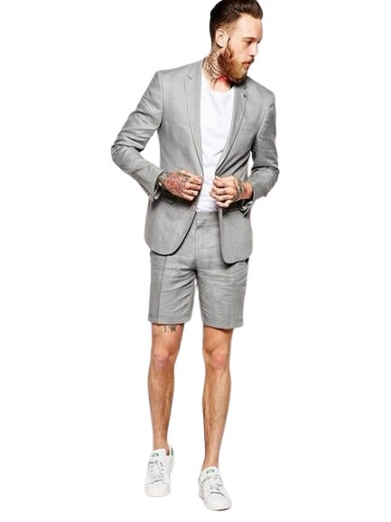 2 Button Single Breasted Notch Lapel Slim Fit Short Pant Material: Linen,Cotton Color: Grey Mens Linen Suit SKU#MO667