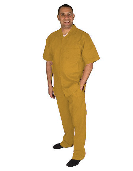 Linen Mustard 2 Piece Summer Walking Casual Suit Pleated Pants Color: Mustard SKU#JA3503
