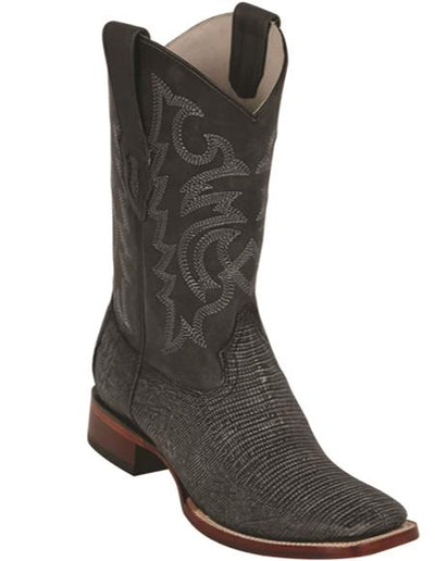 R Toe Cowboy Boots - Round Toe Cowboy Boots - Los Altos Lizard Teju R-Toe Black Cowboy Boots Color: Black