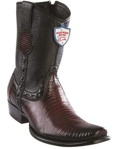 R Toe Cowboy Boots - Round Toe Cowboy Boots - Los Altos Lizard Teju R-Toe Black Cherry Cowboy Boots Color: Black Cherry