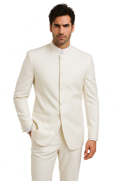 Mandarin Collar Tuxedo - Mandarin Tuxedo - No Collar Suit - Ivory Suit